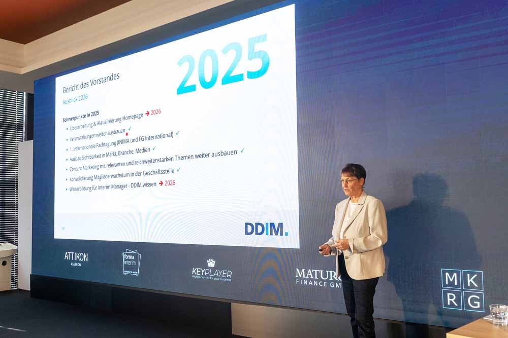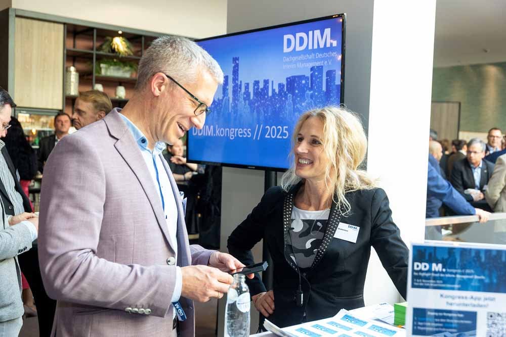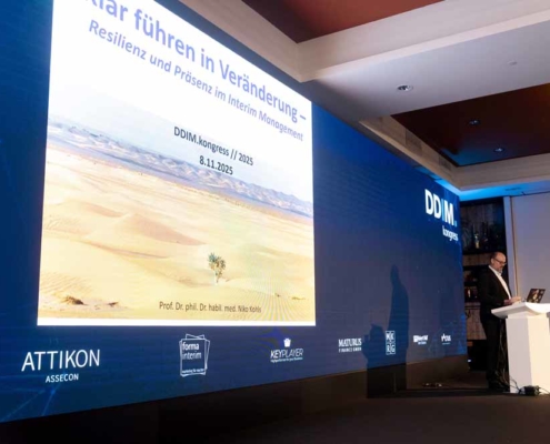 Der DDIM.kongress // 2025, das wichtigste Branchenevent der professionellen Interim Managerinnen und Manager in Deutschland, fand am 7. und 8. November im Van der Valk Airport Hotel Düsseldorf statt – erneut ausverkauft und geprägt von intensiven Diskussionen, fachlichem Austausch und wegweisenden Impulsen. Mehr als 500 Teilnehmende – verteilt über beide Tage – nutzten das zweitägige Format, um sich zu vernetzen, aktuelle Herausforderungen zu reflektieren und Innovationen für die Praxis zu diskutieren.